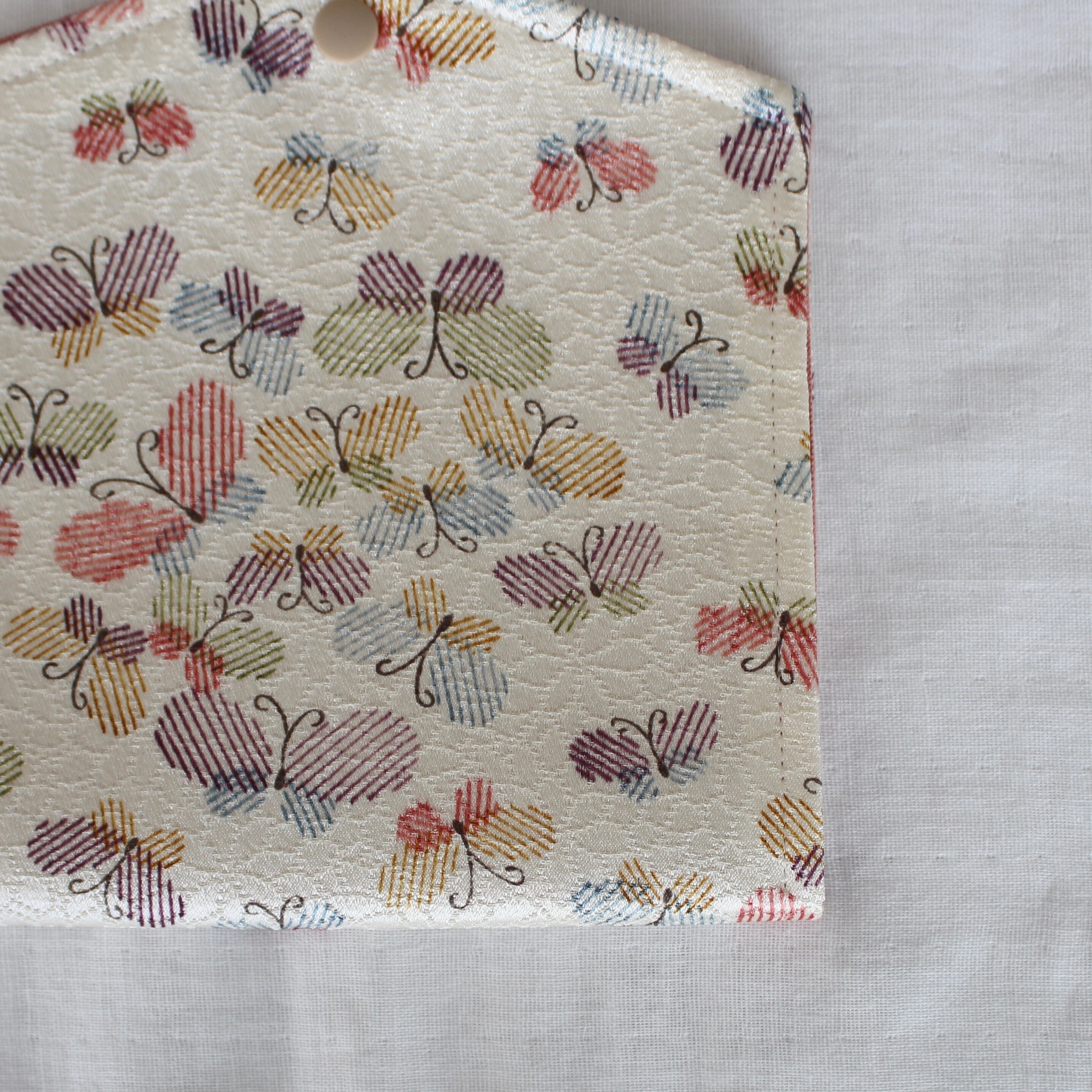 外側に正絹着物、内側にはオックス生地を使用しています。中には芯地をはさんで張りのある仕上がりにしております。